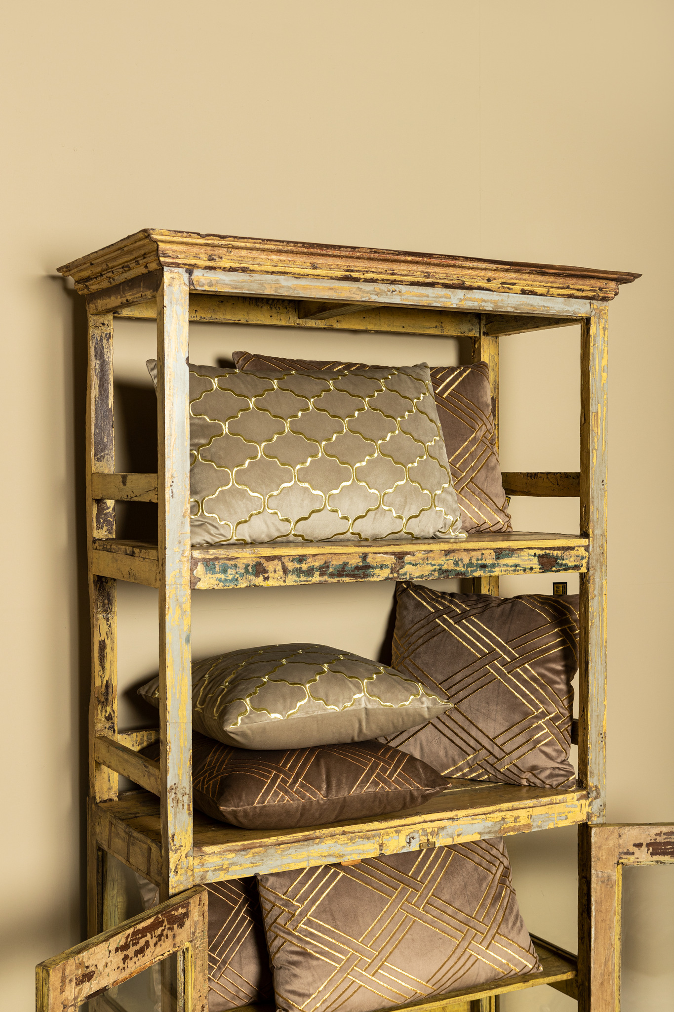 Cerine brown velvet cushion embroidery lines recta