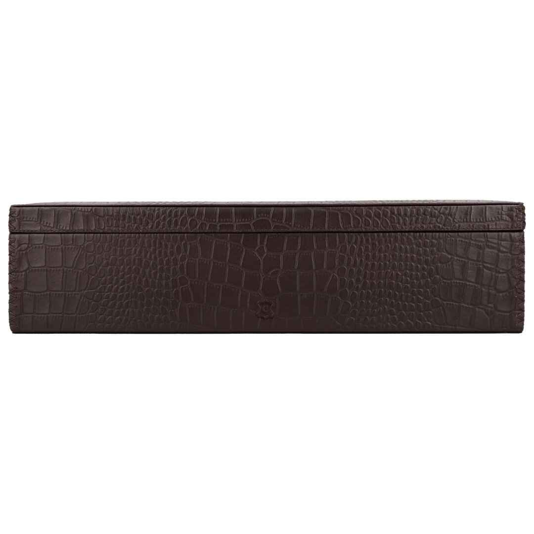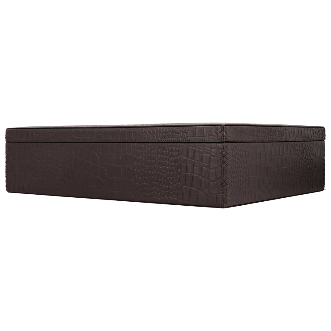 Rechthoekige opbergbox in bruin croco leer. Maat: 40x30x10 cm.