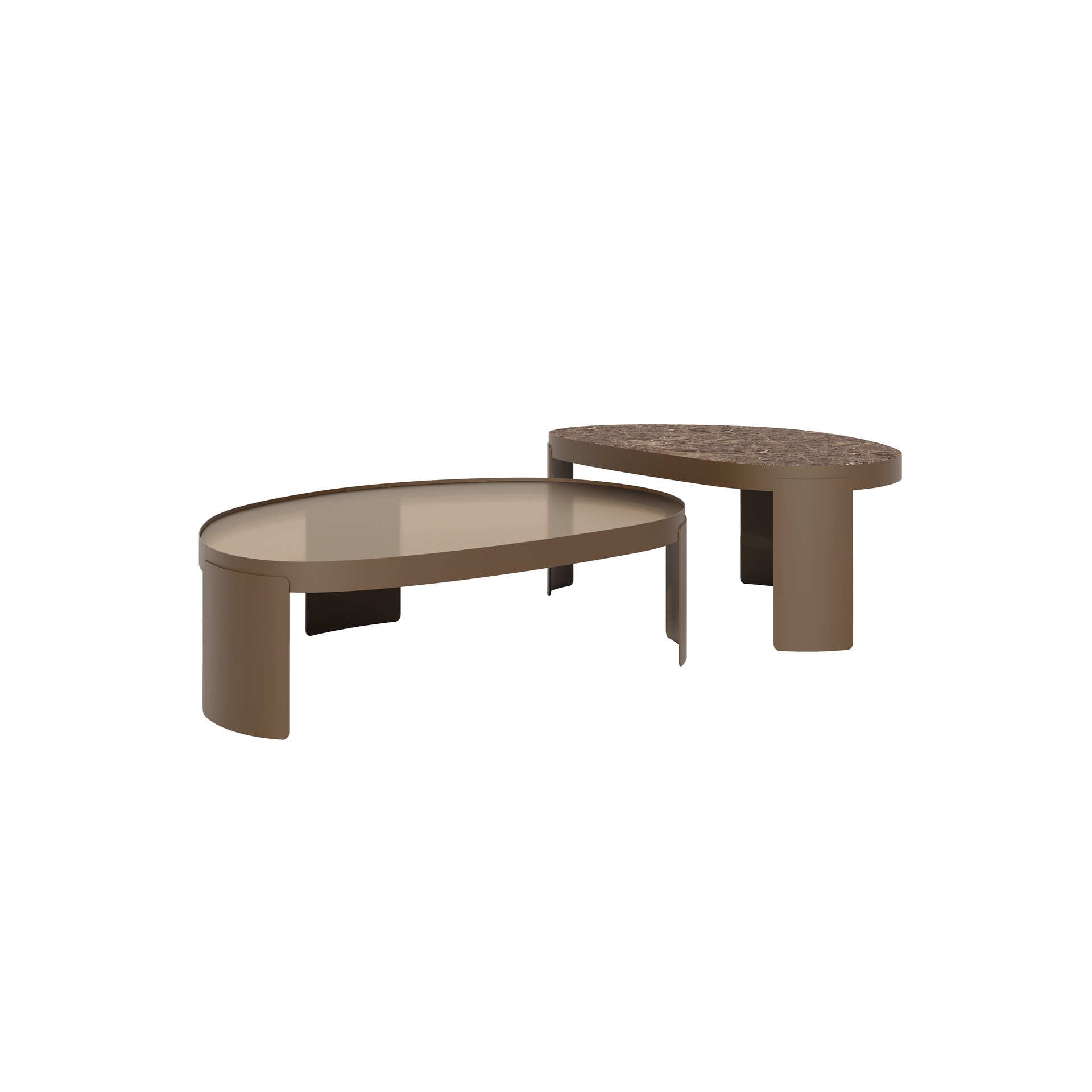 COFFEE TABLE – 1000x700xH280 – METAL FRAME – ANODIC BROWN POWDERCOATING – TOP ORGANIC GLASS 8 mm – GLASS SMOKEY BROWN