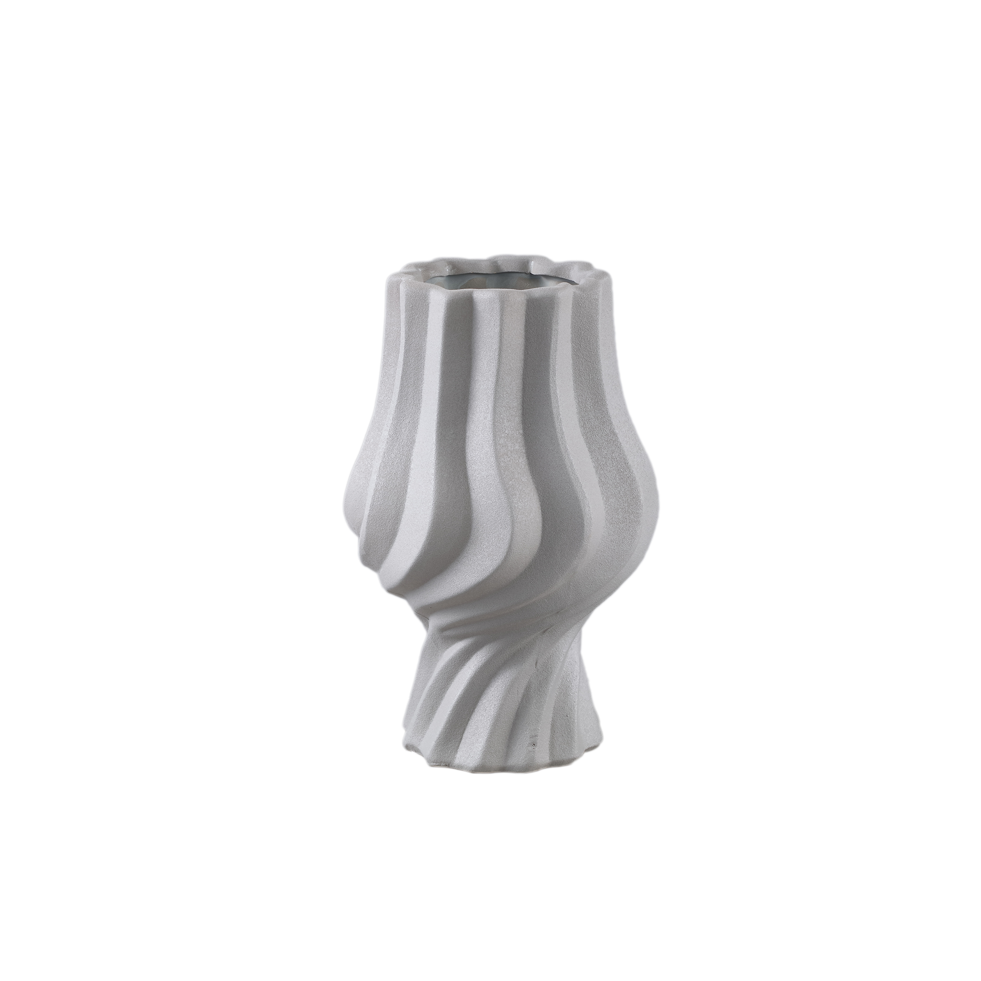 Clair Taupe ceramic matt glazed swirl pot on footS