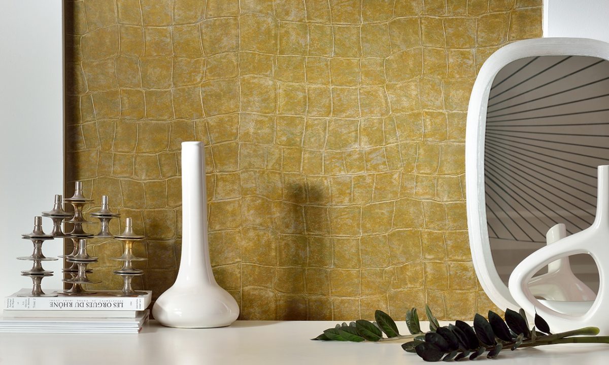 Het luxe behang van Elitis is verkrijgbaar in veel verschillende designs waaronder de Big Croco Legend. Dit behang is geïnspireerd op de krokodillenhuid die ook wordt gebruikt voor de designer tassen van de luxe merken.