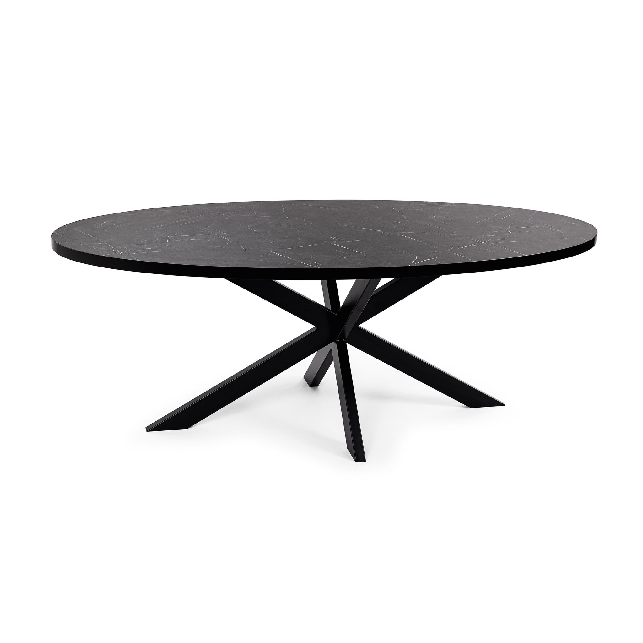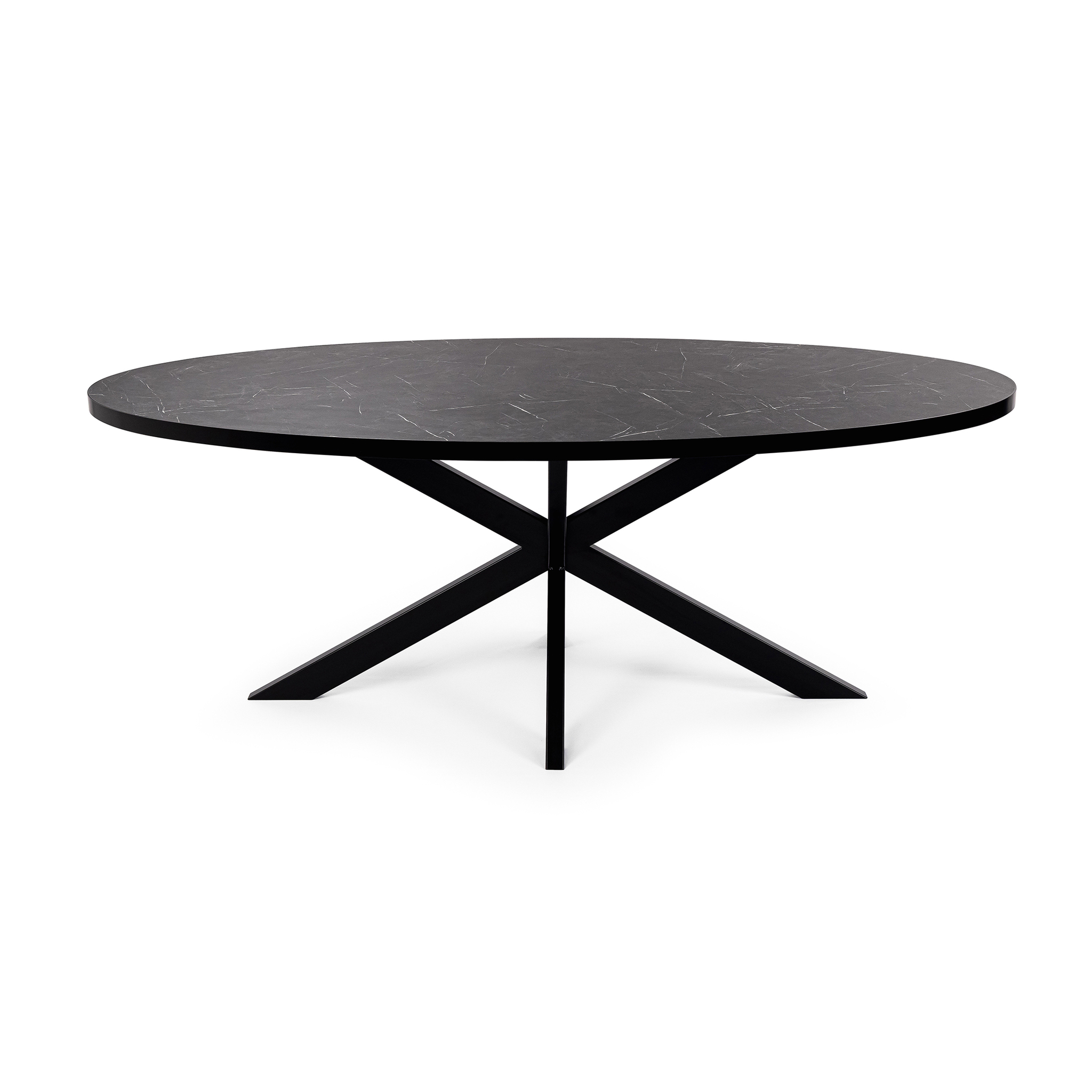 Stalux Ovale eettafel ‘Mees’ 180 x 100cm, kleur zwart / zwart marmer