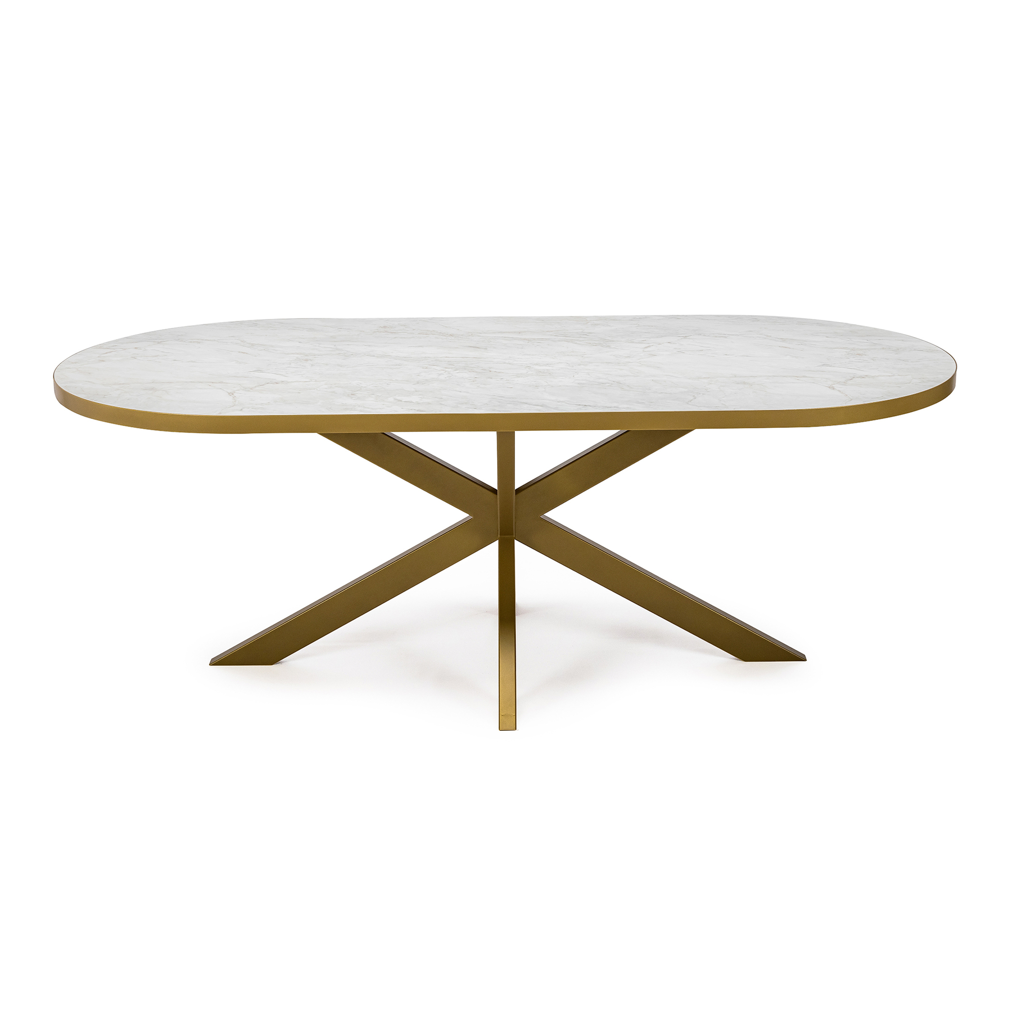 Stalux Plat ovale eettafel ‘Noud’ 240 x 100, kleur goud / wit marmer